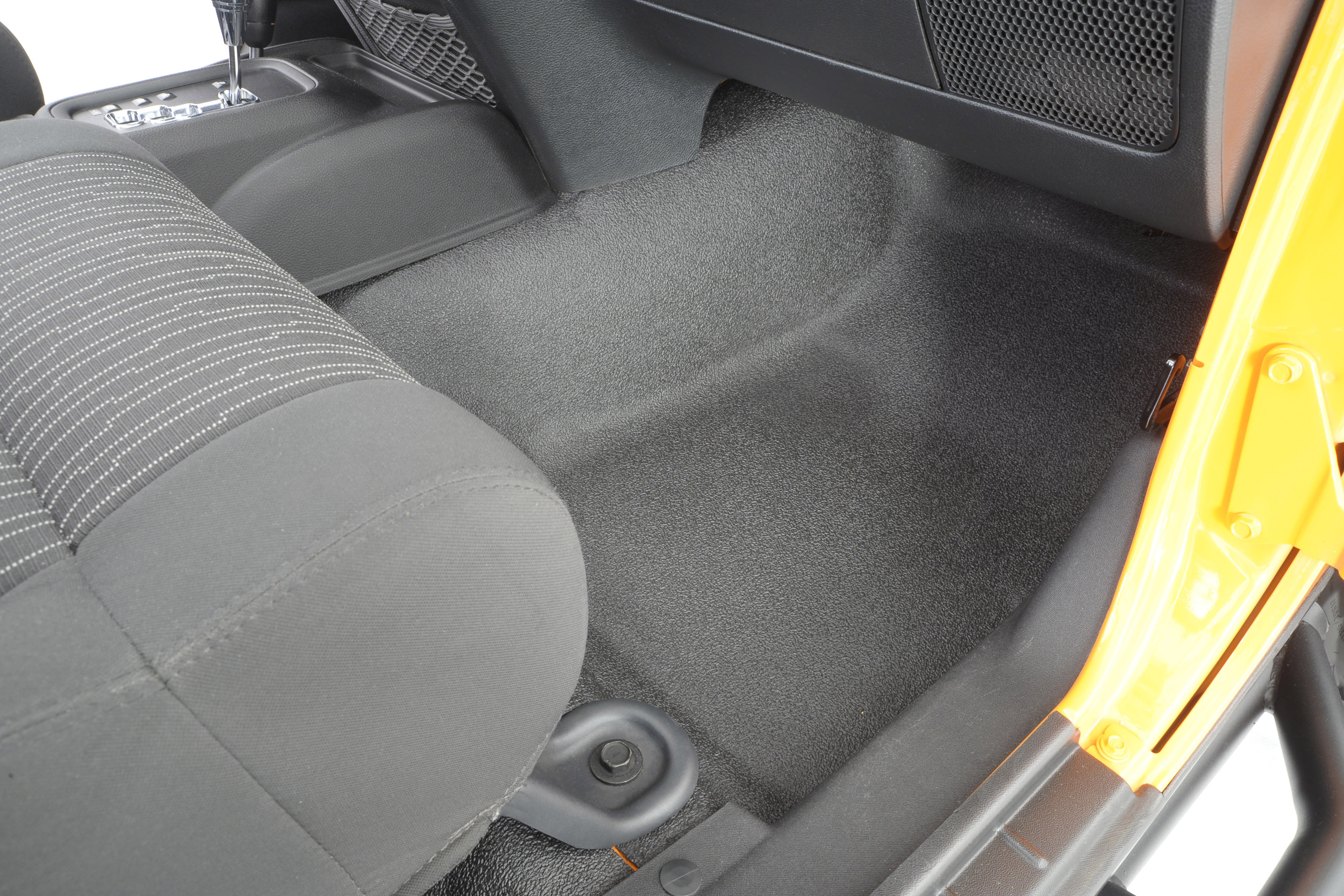 No sanding,prepping and damage installation. Installs quickly no need to remove seat bracket or center console. Custom contoured fitment for a snug tight finish.Heavy duty 1/4in. textured anti skid finish. Thick foam layer provides superior dent protection. Cushioned knee friendly surface.Non-woven fiber backing will not scratch jeep floors. Limited lifetime warranty.