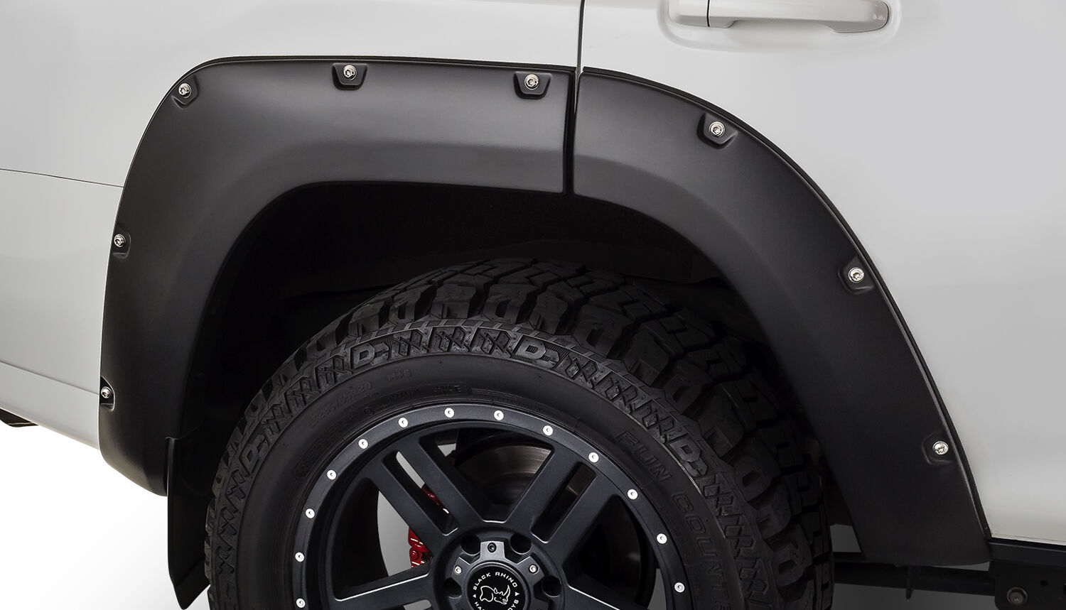 Put durable, rugged-looking protection over your oversized tires and low-offset wheels with Pocket Style Fender Flares. Made with our proprietary Dura-Flex(R) 2000 ABS construction that can be paint-matched to your vehicle, they stand up to abrasions, chemicals, chips, cracks, and damage from any kind of road. You get maximum tire coverage and a tough off-road look with stylish stainless steel bolt-on rivets to complete the look. Made in the USA with global materials and backed by Husky Liners Limited Lifetime Warranty.