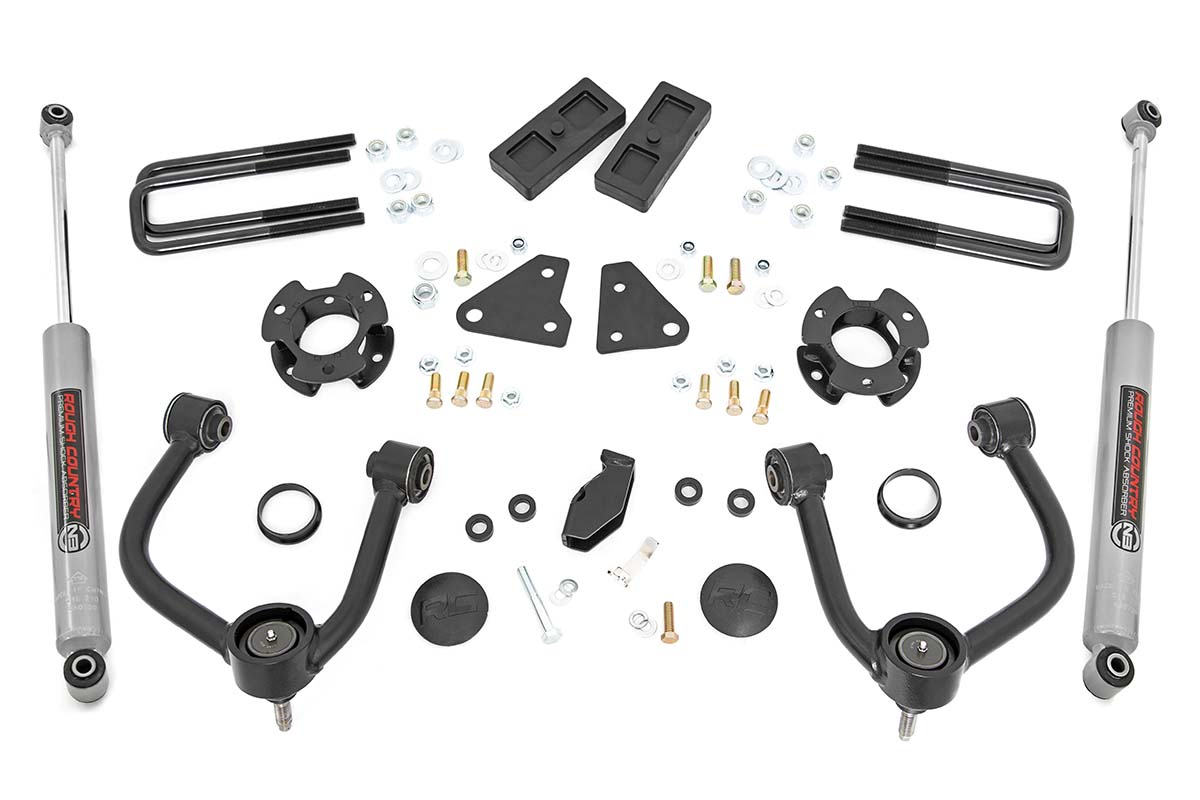 Transform the look of your truck with Rough Country's 3.5in Ford Ranger Suspension Lift! This all-inclusive kit features everything you need to give your vehicle aggressive good looks and enough ride height to run larger wheels and tires. This 3.5in kit lifts and levels your vehicle from front to rear, giving this popular mid-size platform a much needed boost and a whole new look. Each kit features a set of high-quality, forged aluminum upper control arms and differential drop brackets that have been engineered to retain the optimal angle after lifting. By preserving those angles, you get an aggressive, bold stance with plenty of potential for off-road action while still retaining the smooth factory ride quality and handling. Each kit also includes a set of N3 Nitrogen-charged shocks for an incredibly smooth ride both on and off-road. Includes a Lifetime Replacement Warranty.